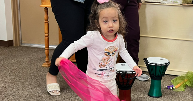 The kid-friendly dance music soon had babies and toddlers, along with adults, moving and shaking. Some used colorful scarves to gain attention, while others shook maracas and banged on mini bongo drums, creating community as the beat went on.