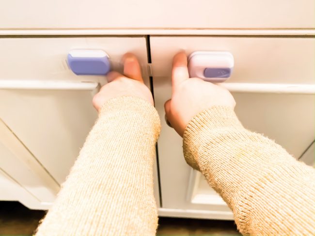 - Coloque los electrodomésticos que sean pesados o que tengan partes afiladas en armarios que su bebé no pueda alcanzar o abrir.